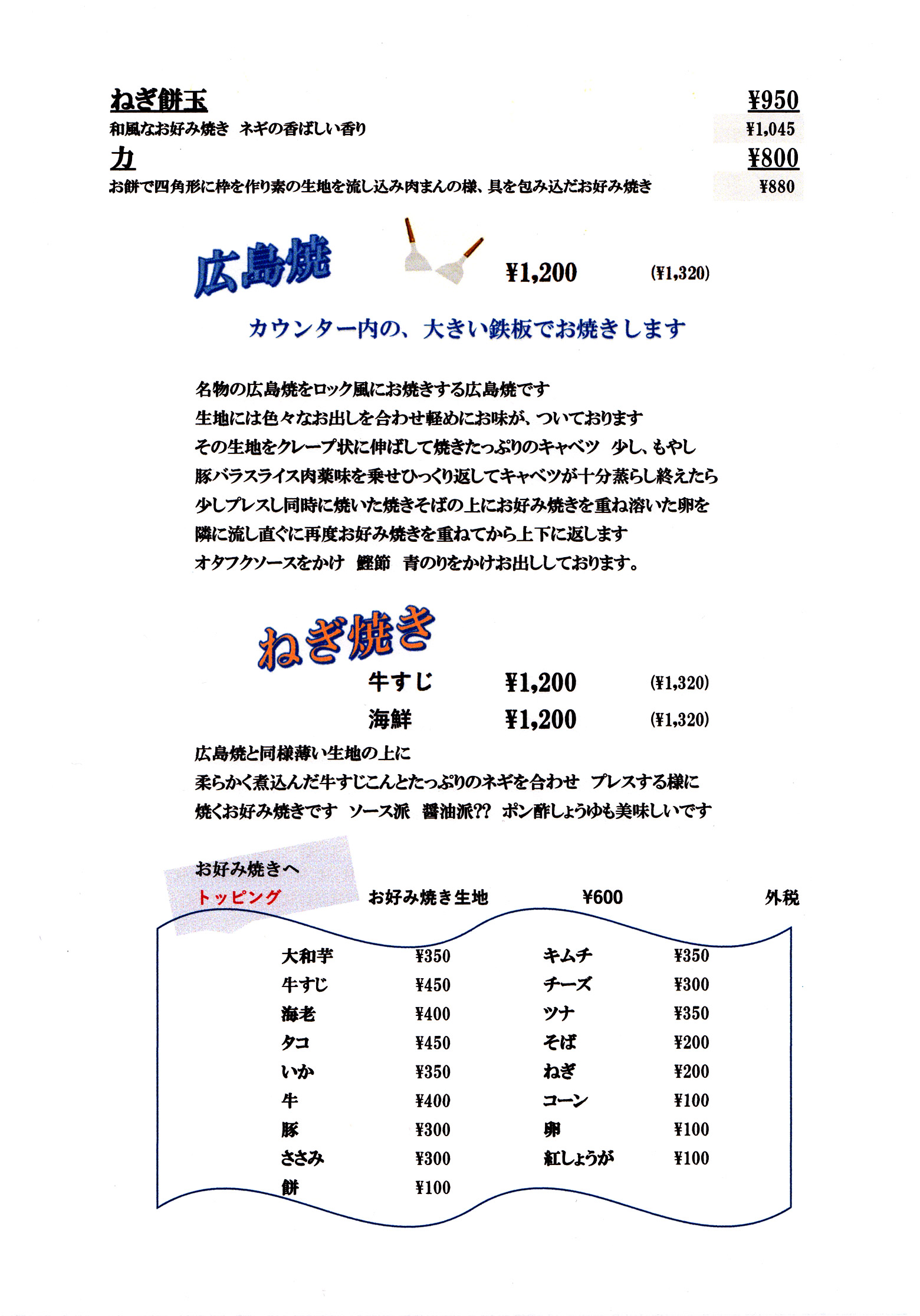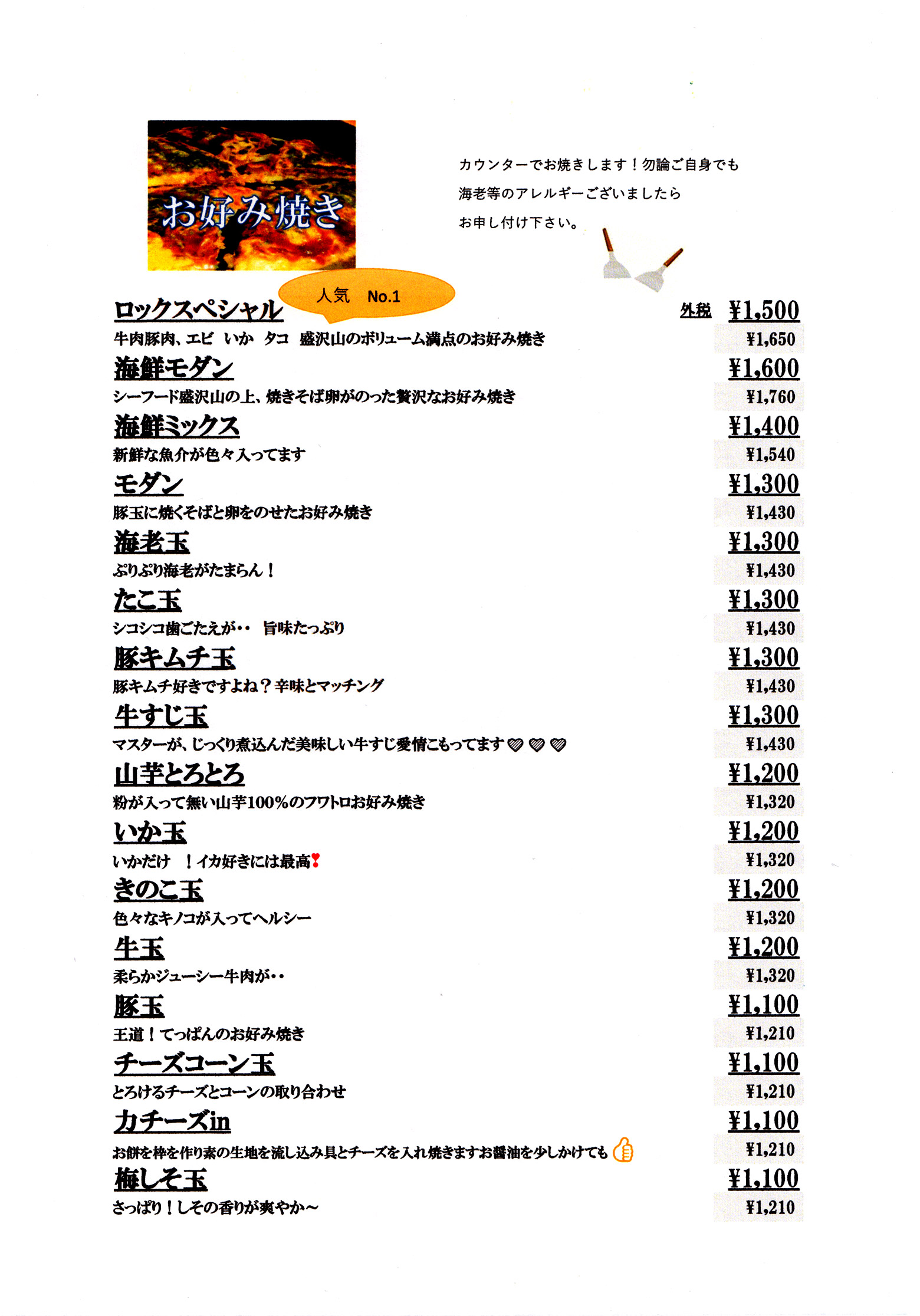 ロック お好み焼 もんじゃ焼 鉄板焼 その他 ドリンク 店舗案内
